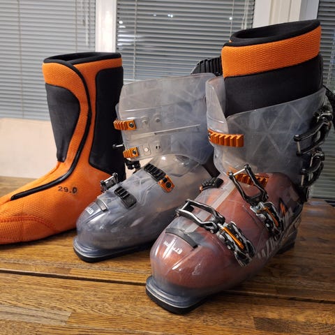 Dalbello laskettelumonot, 25,5/27,5. Pinnassa kulumaa, mutta täysin ehjät.