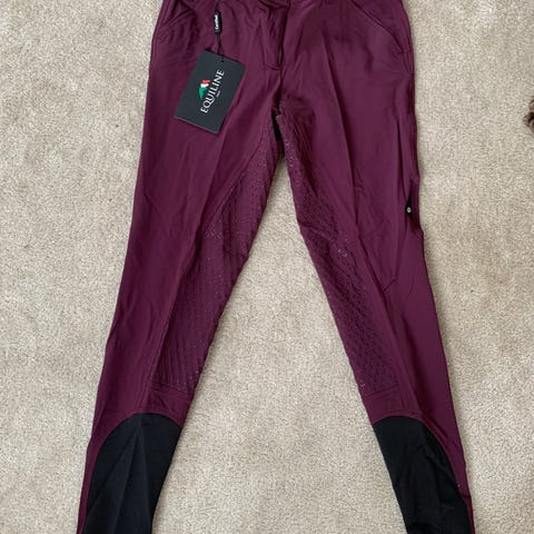 Laadukkaat ratsastushousut kokogrip -paikoilla, upean leikkauksen ansiosta istuu kivasti takaa. Keskikorkea vyötärö, etutaskut. Joustolahkeet. Laadukas Schoeller kangas. Viininpunainen.
