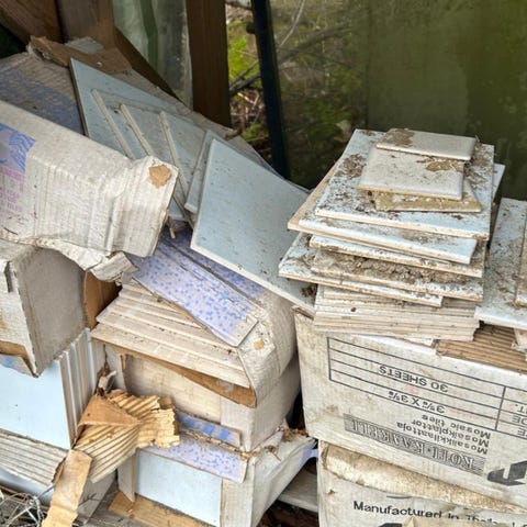 Pääasiassa lastulevyjä mutta myös yksi paksumpi lasilevy ja pieni kehyksetön peili