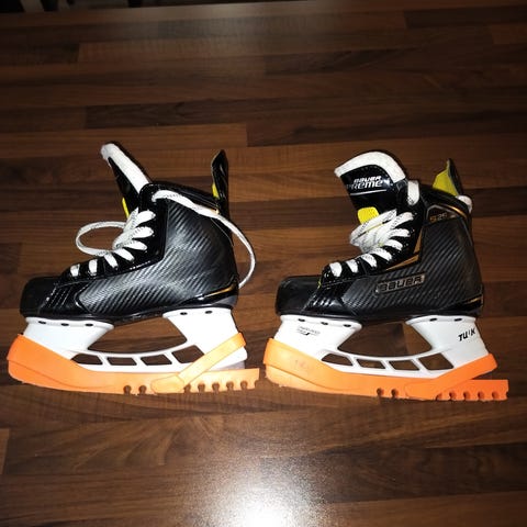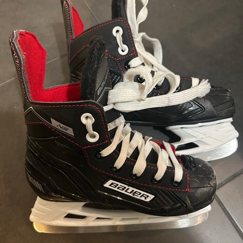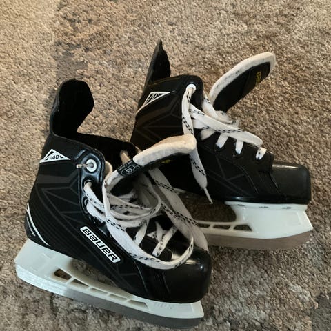 Bauer Jääkiekko Luistimet lasten koko 32. Luistimissa musta väri. Kärjissä naarmuja, muuten ok kunto.
