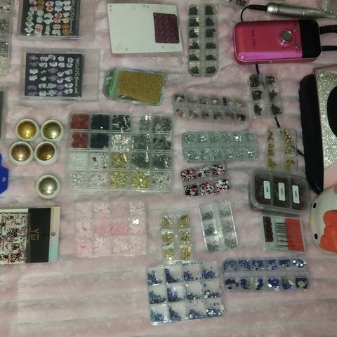 - kynsien koristeluun kimallejauheita, tarroja, koristeita, helmiä yms.