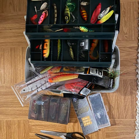 Myynnissä kattava paketti uusia, avaamattomia kalastusvieheitä ja tarvikkeita tunnetuilta merkeiltä kuten Rapala, CrushCity, Sufix, Blue Fox ja Squidgies.