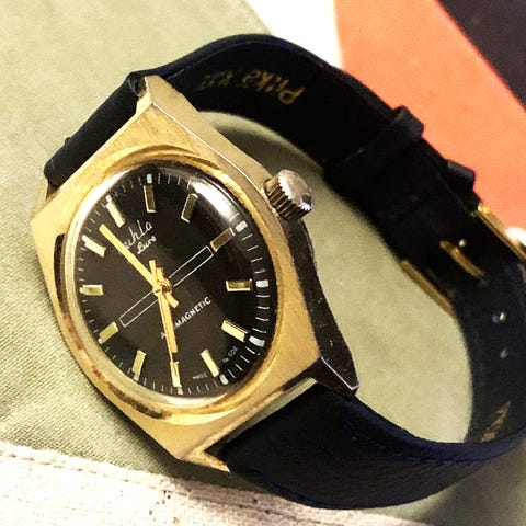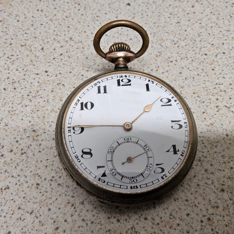 Ruhlan mekaaninen taskukello, kromikotelo. Toimii. Valaisevat osoittimet.