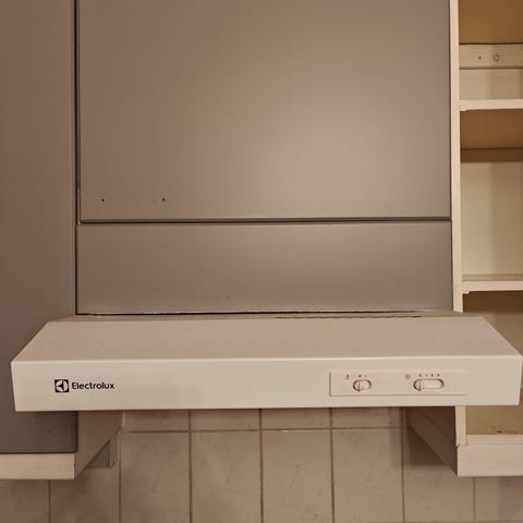 Electrolux rosterinen liesituuletin, jossa on pyöreä ilmanpoistoaukko ja sähköjohto pistokkeella. Sopii keittiön ilmanvaihtoon ja rasvanpoistoon. Omalla moottorilla. Kaipaa hieman putsausta.