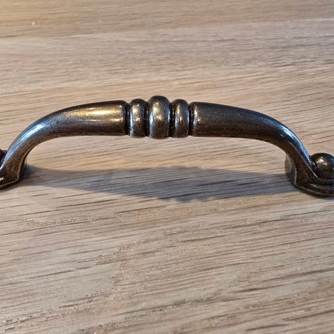Vanha pöytärikkalapiosetti messinkia ja puuta. Pituus 23 cm.