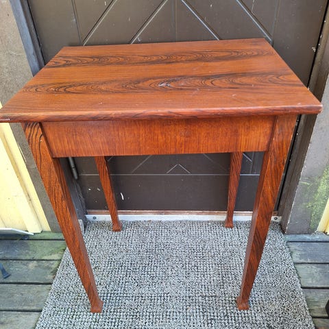 Kuvan upea käsin koristeltu pikku pöytä. Taitaa olla teakkiä. Koriste kukasta puuttuu pari terälehteä. Todella hieno halk. 37cm kork. 52cm.Lohjalla.