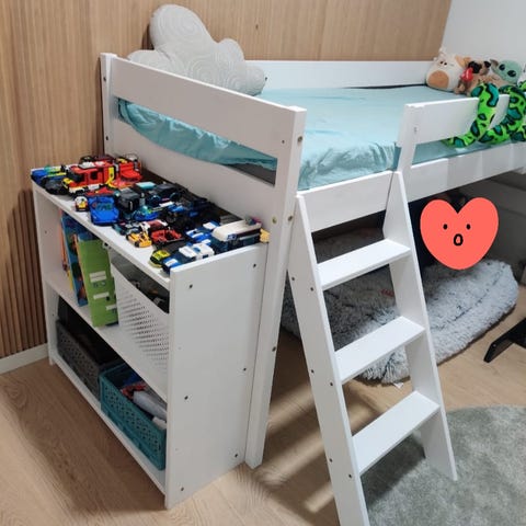 Ostettu käytettynä, mutta ei sopinut lapsen huoneeseen. 80 cm leveä ja 200 cm pitkä puoliparvisänky. Helppo pedata, alle jää tilaa säilytykselle ja leikeille. Patja ei kuulu mukaan. Sänky purettu osittain kuljetuksen helpottamiseksi. Mukaan lähtee kasausohje, mutta sekin löytyy netistä hakusanalla "Nukkumatti puoliparvisänky". Lisäksi mukaan ruuvit ja muut kiinnikkeet. Sänky on eheä, mutta pientä asiaankuuluvaa leikkimisen jälkeä löytyy. Nopeat kaupat ja nouto etusijalla.
