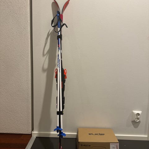 Siistit Salomon sukset 130cm. Pohjat ja kantit hyvässä kunnossa ja pohjat valmiiksi voideltu eli heti valmiit mäkeen, monot koko 37, sauvat. Hinta 125 euroa. Myös lähetys onnistuu.