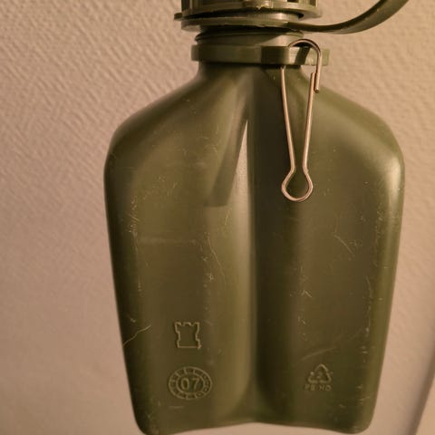 Kohtalaisessa kunnossa oleva armeijan 1L pullo