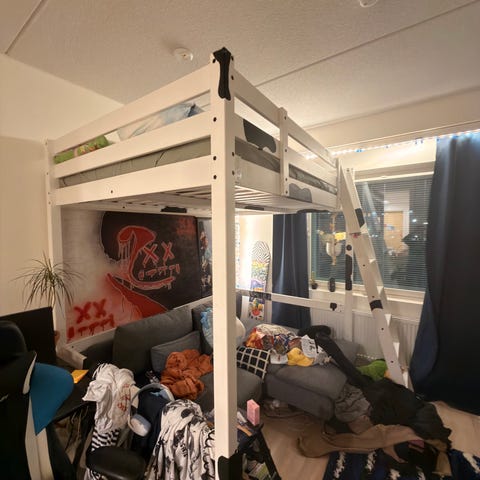 Hillitty Anime- koristelu valkoisessa Ikea Storås parvisängyssä, muuten aivan vakio kuten Ikean kuvastossa. Patjan saa mukaan. Nopea noutaja saa neuvotella hintaa.