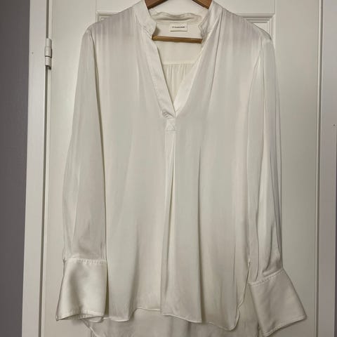 By Malene Birger keltainen naisten silkkijakku/takki. Väri keltainen, koko 40/L, on vähän oversize ja menee koossa 40-42. Takissa on koristeelliset yksityiskohdat hihoissa, kulumaa siellä täällä aran materiaalin ja värin vuoksi. Kelpo takki kuitenkin seuraavalle!