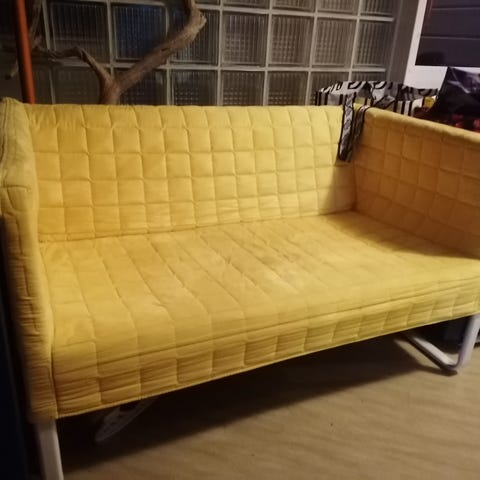 Tumman sininen 2 tai 2,5 istuttava ikea sohva.