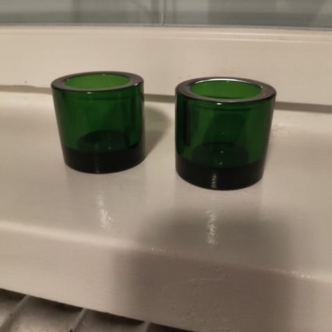 Uutta vastaavassa kunnossa oleva vihreä Butticula- kynttilänjalka. Hankittu 2010-luvun loppupuolella. Valmistettu suupuhalletusta lasista, joten tuotteelle on tyypillistä, että niissä voi esiintyä satunnaisia ilmakuplia tai muita pieniä käsityön jälkiä. Pohjassa teksti Marimekko.