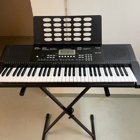 Startone MK-200 sähköpiano, jossa on 61 kosketinta ja useita ääni- ja rytmivaihtoehtoja. Sisältää kosketusherkän näppäimistön, DSP-efektit ja LCD-näytön. Sopii musiikin harjoitteluun ja esiintymiseen. Jalustamukaan.