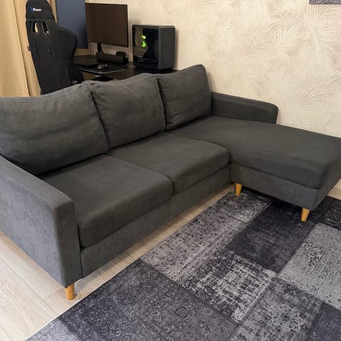 Myydään tarpeettomana kankainen divaanisohva. Leveys 210 cm, syvyys 90 cm. Divaaniosan pituus n 140 cm, puolta voi vaihtaa. Vaaleanpunaiset koristetyynyt ei kuulu kauppaan.