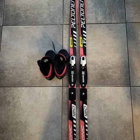VARATTU 1. Peltonen Sonic sukset 110cm, Rottefella siteet (nnn) & sauvat 80cm