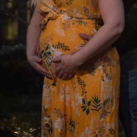 calinkalin merkkinen äitiyspaita kokoa 42/44. Kaula-aukolla ja hihoissa muutama koristenappi. Rinnan alla rypytys.