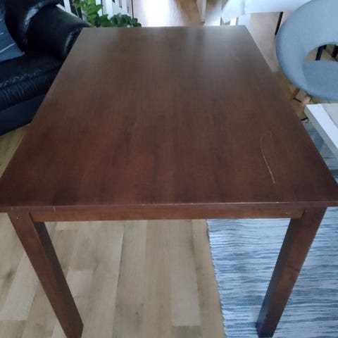 Pöytä on edellisen omistajan mustaksi maalaama ja elämän jäljet näkyvät. Pöytä on kuitenkin tukeva ja käyttökelpoinen. Vain nouto.