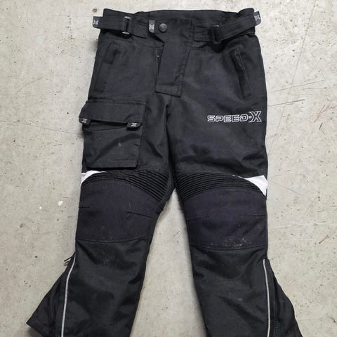 Lasten mp /atv ajohousut, veden pitävät, irroitettavat lonkka ja polvisuojat. Koko 130.