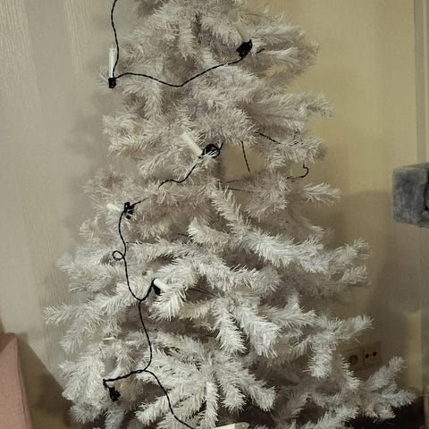 Annetaan joulukuusi. Koristeet eivät sisälly, eikä valot. Muovia ja metallia. Oksat muotoiltavissa. Kolmessa osassa. Jalan kiristysruuvien kierteet mennyt rikki, mutta pysyy pystyssä ilman niitäkin. Vain nouto.