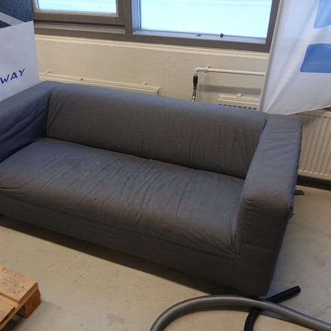 Joka päiväisessä käytössä ollut IKEAN VIMLE sohva (sohvan tarkat mitat kuvissa) , vikaa löytyy käsinojista ja jaloista. Käsinojat eivät ole koskaan olleet kiinni kunnolla sohvassa (ikean huikea sunnittelu) jonka johdosta nämä ovat repsahtaneet ja jalat vääntyneet. Kangas on kestävää mutta venynyt osittain istuin osasta. Päällyset irrotettavat eli pystyy pesemään (pesu jää uudelle omistajalle). Sisältää hyvän kokoisen säilytys tilan divaanin alla. Mukava istua vioistaan huolimatta. Tästä sohva uuteen kotiin tai vaikka treeni kämpälle.