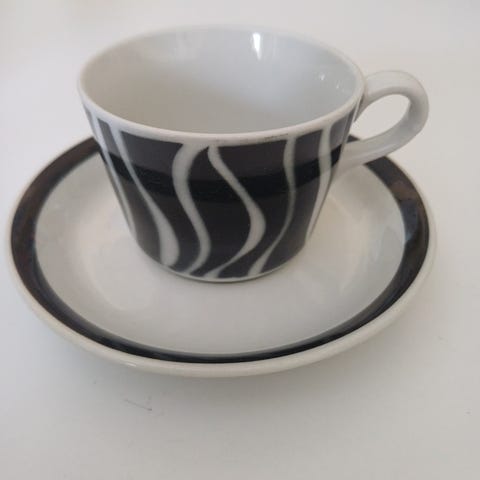 Zebra aluslautanen Upsala-Ekeby; Eugen Trost. Halkaisija noin 13,5 cm. Huom! Aluslautanen on ehjä mutta se on krakeloitunut ja yksi tummempi kohta.