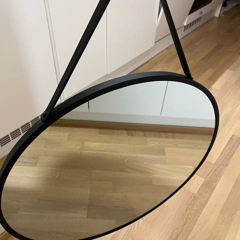 Myydään mustanruskea lattiapeili. Pituus 59 cm, leveys 47 cm, korkeus 183 cm.