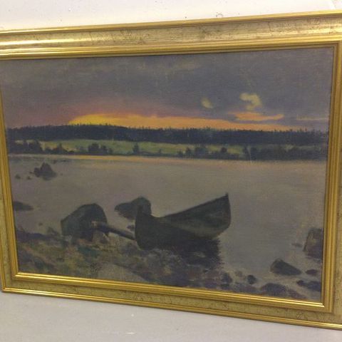 Hyvin harvinainen taulu signeerauksella. Korkeus 65cm ja leveys 122cm.