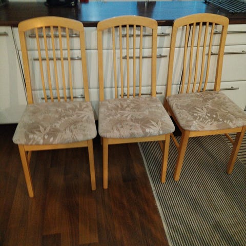 4kpl lemmikkien raapimia DIANA-tuoleja. Pinnan kunto kohtalainen, runko hyvässä kunnossa. Yhdestä tuolista puuttuu yksi ruuvi, muttei se ole vaikuttanut käyttöön.