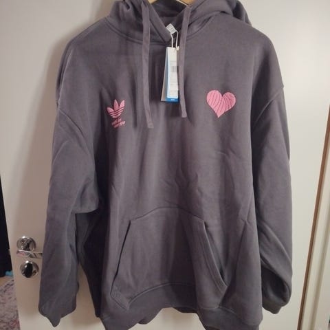 Adidaksen musta oversize huppari, koko L. Pieni kuluma helmassa, muuten siisti ja ehjä. Pituus 80 cm ja kai-kai 60 cm. Materiaali puuvillaa 70% ja polyesteriä 30%.