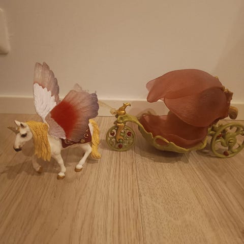 Schleich lava-auto. Mukana ovat myös Schleich leijonaperhe, kaksi ihmishahmoa sekä kasattava puu. Lelut on valmistettu muovista. Auton pituus on noin 30 cm