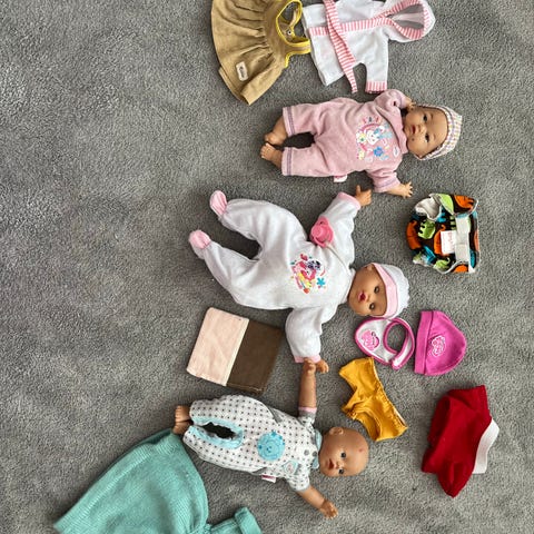 2kpl Baby Born Jasmin nukkeja. Sisältää vaatteita ja tarvikkeita, kuten pipoja ja ruokailuvälineitä. Puhuvat suomea!
