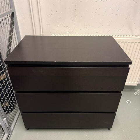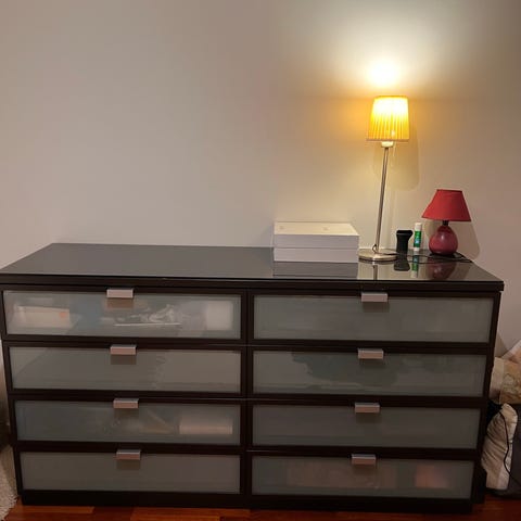 Annetaan kuvanmukainen valkoinen lipasto. Käyttökelpoinen, laatikot liukuu hyvin. Alimmassa laatikossa 3.nessa kuvassa näkyvä vika. Lipaston vasemmalla puolella keltainen koukku jota en saa irti.
