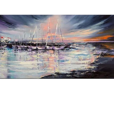 Kaunis rantamaisema. 90x120cm. Ei löytänyt meillä sopivaa paikkaa. Hieman vääntynyt, mutta kun kiinnittää neljästä kulmasta oikenee kyllä. Muutoin taulu on hyvässä kunnossa.