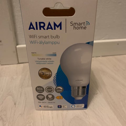 Airam WiFi-älylamppu RGB, värillinen LED-lamppu, joka mahdollistaa langattoman ohjauksen WiFi-yhteyden kautta.