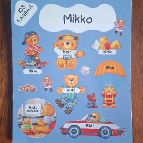 Uudet Ritari Mikke tarrat (tarra-arkki n. 29,8 x 41,5 cm).