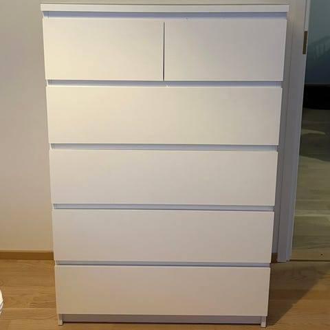 Ikean Malm lipasto 3 laatikkoa. Kultaiset yksityiskohdat kontaktimuovia (voi repiä pois).