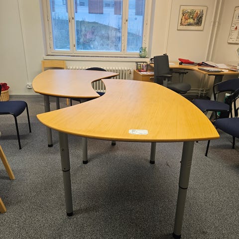Työpöydässä on muutama kolhu, mutta eivät ole häiritseviä ja ne voi mahdollisesti paikata piiloon. Esimerkiksi työtason ohut naarmu jää hyvin tietokonenäytön taakse piiloon.