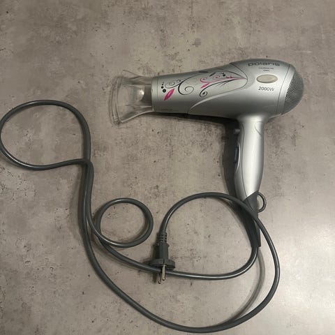 kuvan mukaiset,hyvät,siistit,ehjät tavarat,tehokas puhallin,kiharrin ja suurentava halk.20 cm peili imukupeilla...