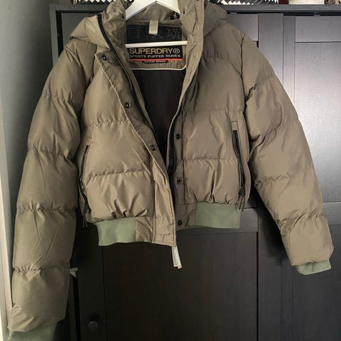 Lämmin ja tyylikäs toppatakki, jossa on painonappi- ja vetoketjukiinnitys sekä kaksi vetoketjullista ulkotaskua, säädettävä pehmustettu huppu ja joustavat hihansuut. Koko 38.