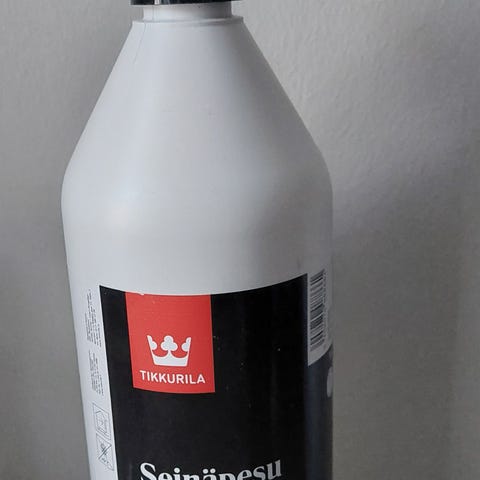 Teknos Rensa Super Maalipesu, joka soveltuu maalipintojen puhdistukseen ennen maalausta. Riittää kun suihkutat seinälle, pyyhit lattialastalla ja 5min päästä voit maalata päälle. Ei tarvitse erillistä vesipesua, haihtuu itekseen pois seinältä.