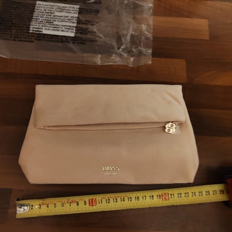 Hugo Boss miesten laukku. Päällimateriaali 100% cow skin (lehmän nahkaa). Laukun takapuolella tasku ja laukun sisällä erillinen vetoketjutasku (vetoketju rikki). Kiinnitys magneeteilla. Etupuolella alhaalla reunakanttauksissa pienesti kulumaa, näkyy kuvissa. Yleisilmeeltään siisti ja toimiva laukku.