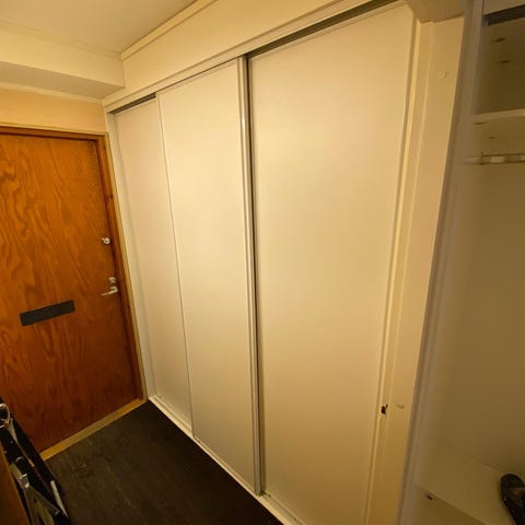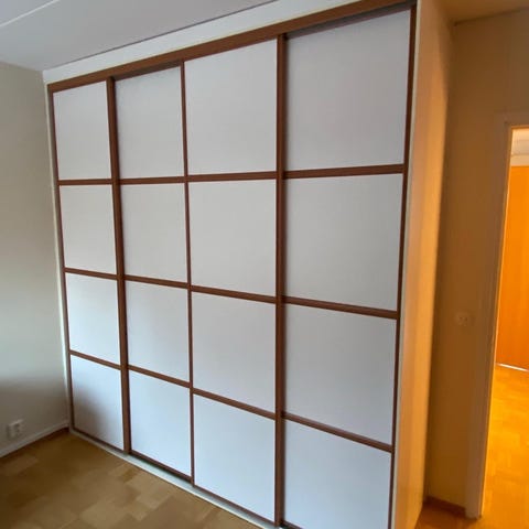 Myydään suoraan käytöstä ja hyvin kulkevat liukuovet 4kpl, pyörästö ja kiskot.