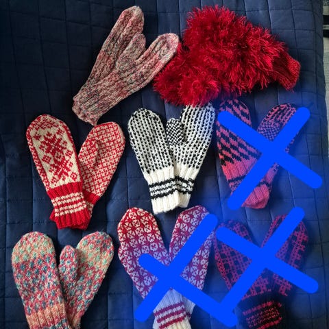 Kauniit käsinneulotut lapaset.