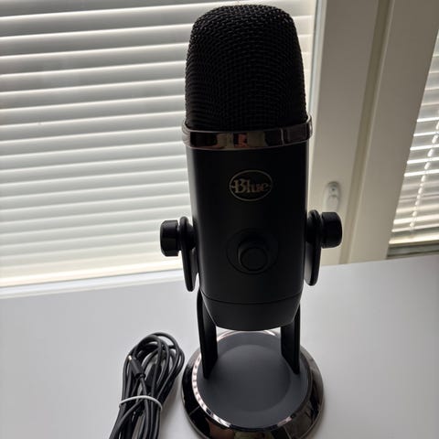 Logitech Yeti mikrofoni mustassa värissä. Sisältää mikrofonin, jalustan ja USB-kaapelin. Soveltuu äänen tallentamiseen ja suoratoistoon. Uutena 130e nyt 40e käytetty max 3h testiin mut ei tarvetta