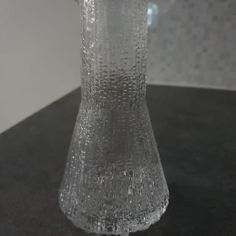 Hyväkuntoinen Iittalan Ultima Thule kulho. Valmistettu kirkkaasta lasista. Kulho on osa Ultima Thule -sarjaa, jossa on tunnusomainen jäinen ja teksturoitu pinta. Halkaisija 200mm.
