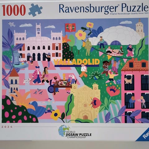 Myynnissä 1000 palan palapeli, jossa kaikki palat tallessa ja palat pussitettu. Minulla on koira, joka ei osallistu palasteluuni.