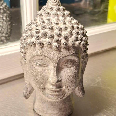 Budhan pää, kultainen. Uusi. Painaa hiukan. Materiaalia en tiedä.