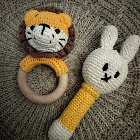 Yhdessä 25,- erikseen: ripustettava pupu soittorasia 25,- ja norsu unilelu 5,-