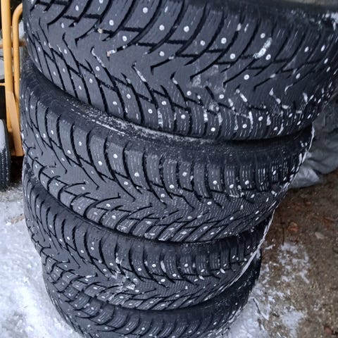 Renkaissa pintaa tasaisesti 6-7mm, nastat hyvin paikoillaan.
